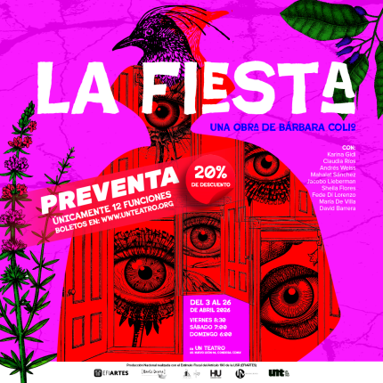 Un viaje sensible y profundamente imaginativo para grandes y pequeños ALICIA Un viaje al corazón de la imaginación Comprar boletos -20% Seleccionar opciones Close LA FIESTA $480.00 - $1,650.00Rango de precios: desde $480.00 hasta $1,650.00 Seleccionar opciones Close DESEO $600.00 - $1,600.00Rango de precios: desde $600.00 hasta $1,600.00 Leer más Close Convocatoia de Programación 2026* Programación escénica/ Un Teatro Seleccionar opciones Close Alicia Temporada 2026 $350.00 - $1,600.00Rango de precios: desde $350.00 hasta $1,600.00 Cursos y Talleres Close Taller de formación artística Infantil $2,500.00 🎭 Taller de Formación Artística Infantil (7 a 14 años) Un espacio creativo donde niñas y niños exploran el teatro, el movimiento y la expresión artística a través del juego y la experiencia escénica, acompañados por profesionales de Un Teatro Niños. Añadir al carrito